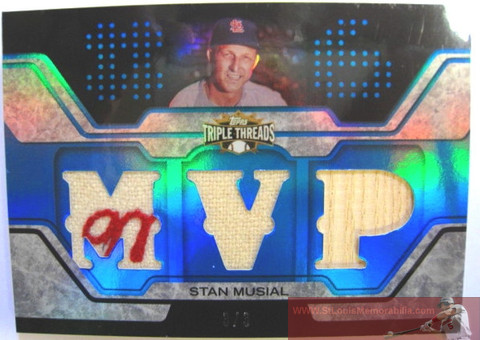 Stan was a 3 time MVP winner. He won the MVP in 1943, 1946, and 1948. This card has the M in Musial that was stitched onto his Jersey.