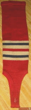 1959 STAN MUSIAL ST. LOUIS CARDINALS MLB BASEBALL GAME WORN STIRRUP SOCK. Seller stated this came out of strong cardinal game worn and autographed grouping. Also, seller had 1959's Cardinal Catcher Ray Katt's #9 with same group.