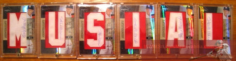Each letter is numbered to six only of each letter and each one is signed by Stan. Almost impossible to put these together as a set to spell his last name and each one is signed. This is a close up view of the MU in Musial.